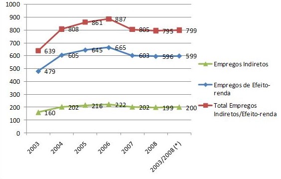 - Gráfico 3 - Empregos indiretos e de efeito-renda gerados pela UnC campus Canoinhas – 2003-2008